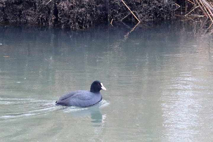 2021年 オオバン 001 戻る 撮影(01/03) 掲載(01/03) 昨年12月下旬に3羽で来ましたが、その後来るのは2羽です。 その中の1羽です。 (Canon) EOS 7D Mark II EF400mm F5.6L USM