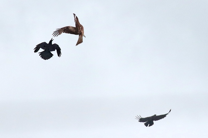 いざ悪魔カラスとの闘いに、と飛び立ちました。