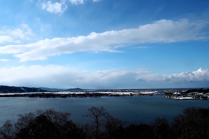 東郷池(とうごういけ)・・・日本海とは橋津川を通じて繋がっている。池の中央付近