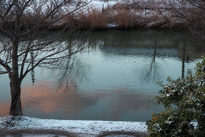 いつも鳥たちを観ている窓外水域の風景です。今週末は再び雪景色になるか