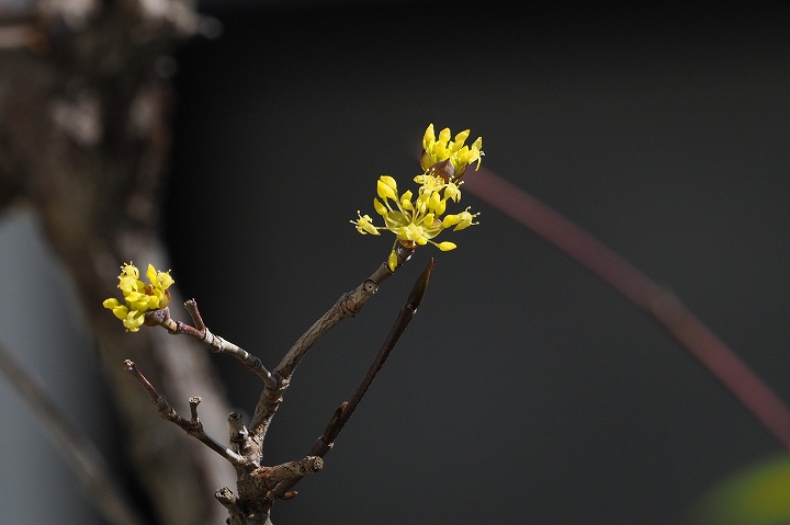 和名 山茱萸。ハルコガネバナ(春黄金花)