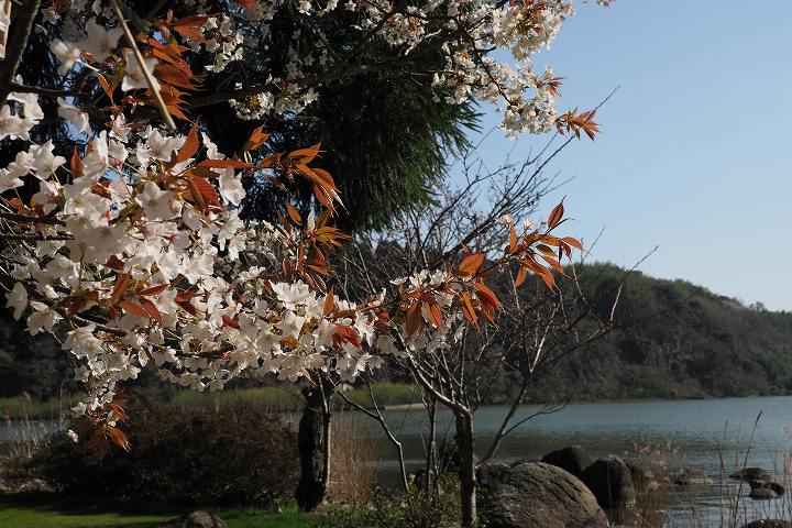 湯梨浜町「東郷池」湖畔のヤマザクラです。
