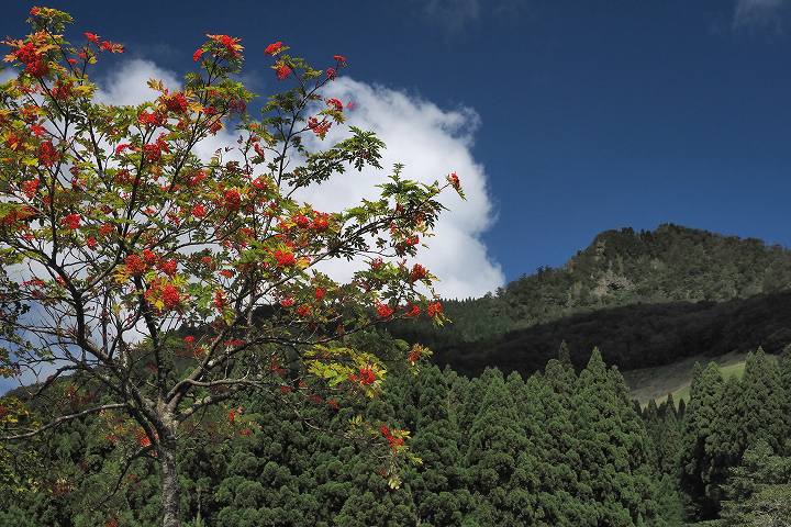 9月に入ればナナカマド(Sorbus commixta)の赤くなった実です。