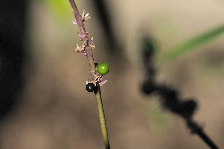 ヤブラン(リリオペ、Liriope muscari)の実です。晩秋には全員が黒くなり ます。