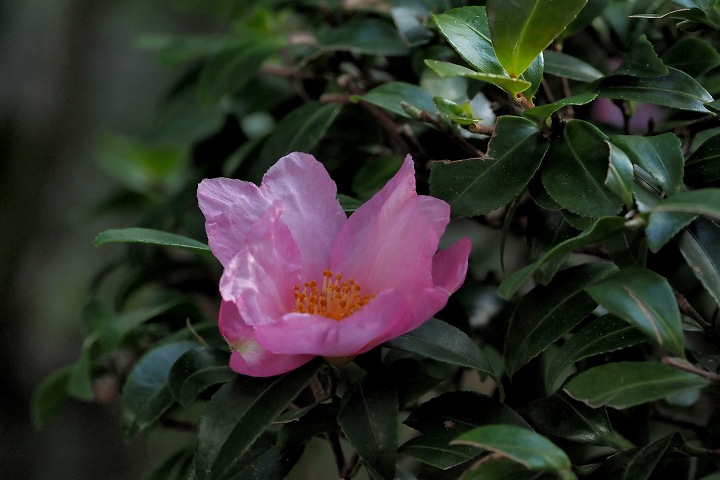 庭にサザンカ(Camellia sasanqua)が開花しました。