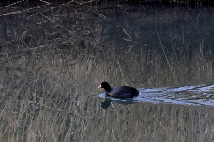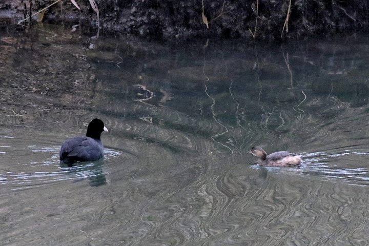 2022年 オオバン 002 戻る 撮影(02/01) 掲載(02/02) 2月登場の一番手はオオバンでした。此のオオバンは窓外水域に棲んでいて、 異種の水辺の鳥が単独で現れると近づいて行きます。 鳥にも好奇心が有るそうですから好奇心旺盛なオオバンのようです。 (写真2) 01/22撮影 カイツブリが単独で来ると、早速近づいて行きました。 (Canon) EOS 7D Mark II EF400mm F5.6L USM