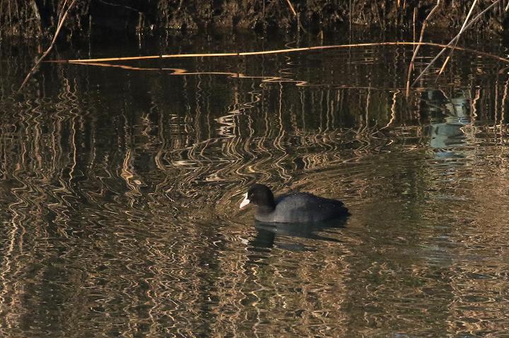 2022年 オオバン 003 戻る 撮影(03/04) 掲載(03/05) 来るのは1羽だけです。 留鳥ですから一年中来てもいいのですが、窓外水域では真夏に観たことが ありません。 窓外水域では冬鳥、と思っています。 (Canon) EOS 7D Mark II EF400mm F5.6L USM