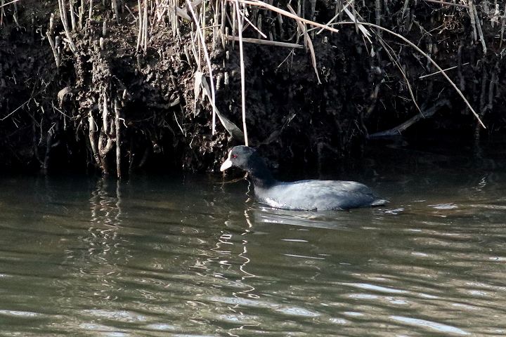 2022年 オオバン 004 戻る 撮影(04/01) 掲載(04/01) 今日から4月。最初に来たのはオオバンが1羽でした。 留鳥ですが暑くなると来なくなりますので、窓外水域では冬鳥、と思っています。 (Canon) EOS 7D Mark II EF400mm F5.6L USM