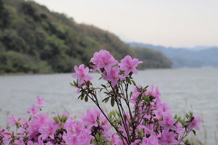 公園に行く途中、「東郷池」湖畔でサツキが満開の光景が有りました。