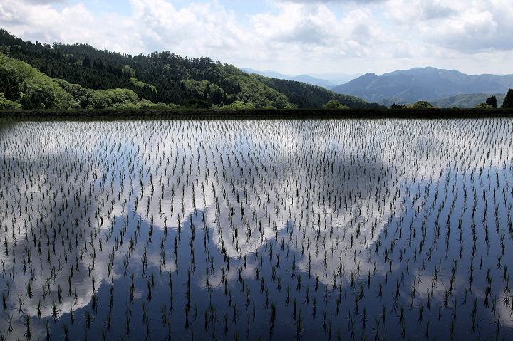 田植え完了の水田が続々と増えていました。
