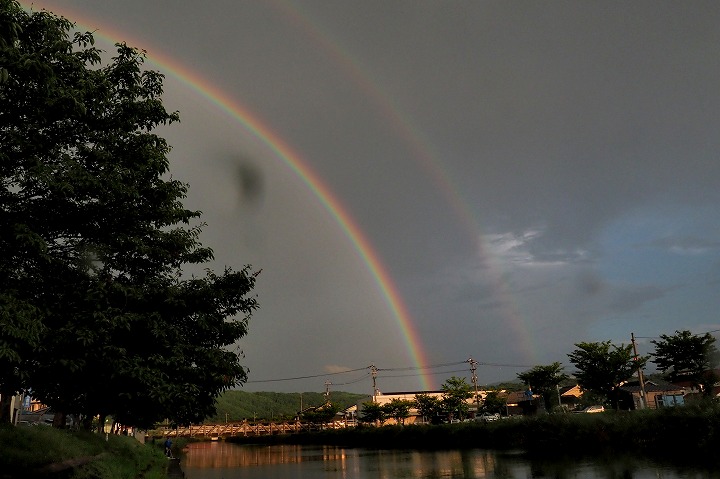 雨が小降りになった時、東の方向に虹が現れました。
