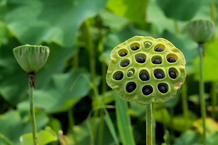 蓮の種です。蓮の花は好きでも、花托は気味悪いから嫌いだ、という人も多い