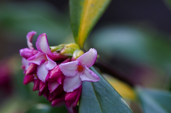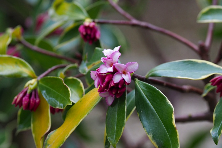昨日(15日)庭のジンチョウゲが、まるで競争しているようにせっせと開花を