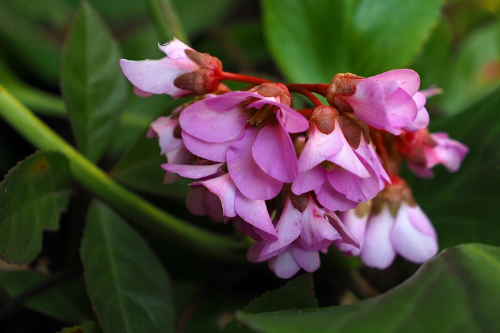 庭のヒマラヤユキノシタ(Bergenia stracheyi)です。