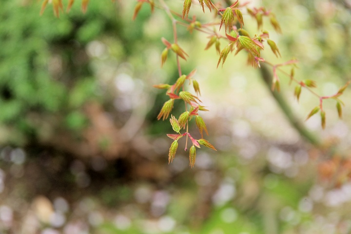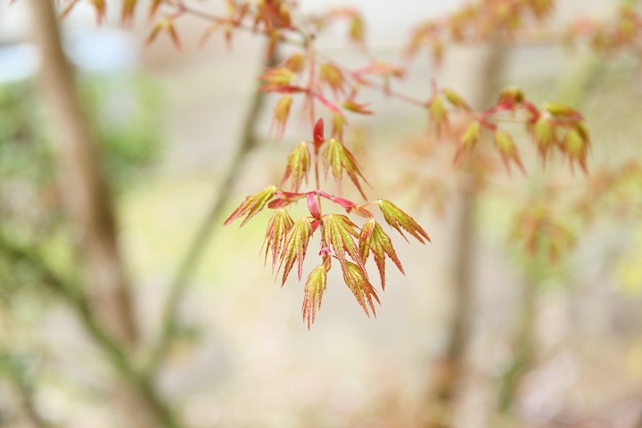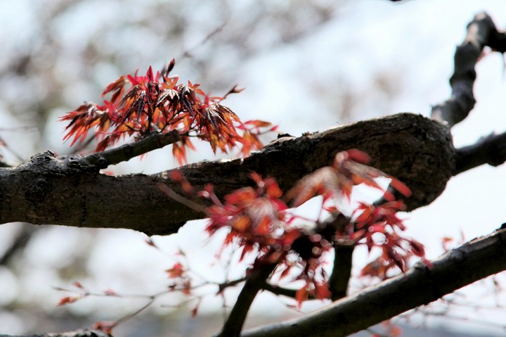 庭のカエデ「(モミジ)が小さな赤い葉っぱを出してから2週間ほど経って、大きくて