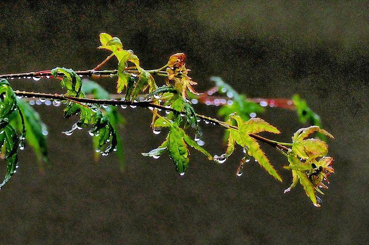 今朝窓の外を見たらカエデの枝には水滴が綺麗に並んでいました。これはこ