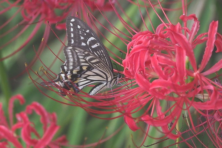 てもらいました。その中の一場所ではやはり5匹のアゲハが曼珠沙華に集まって