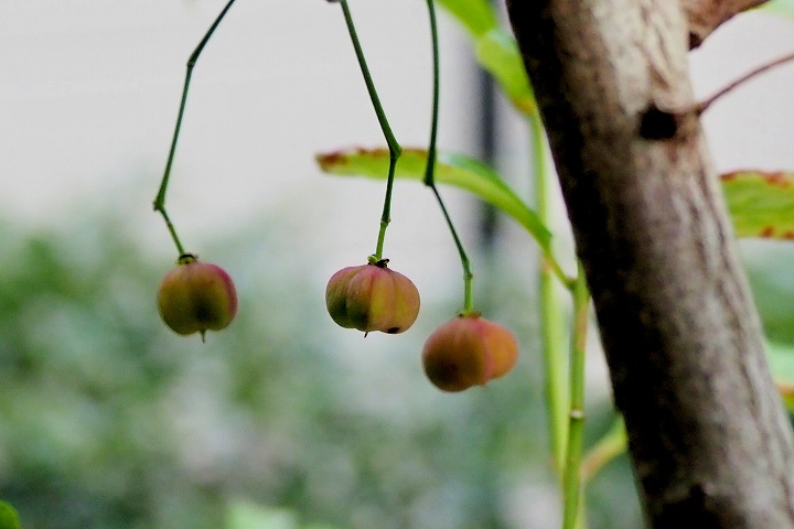 急に寒くなりましたので庭のマユミは冬の色に近づきました。