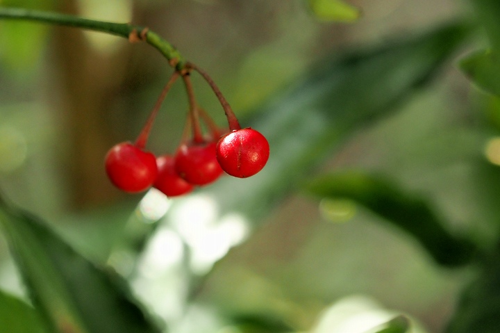 庭で派手な色を見せているのはマンリョウの実だけでした。