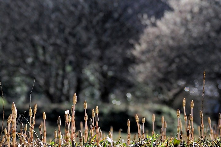 空の方を見れば梅花、地上を観ればツクシや小さい花で楽しみました。