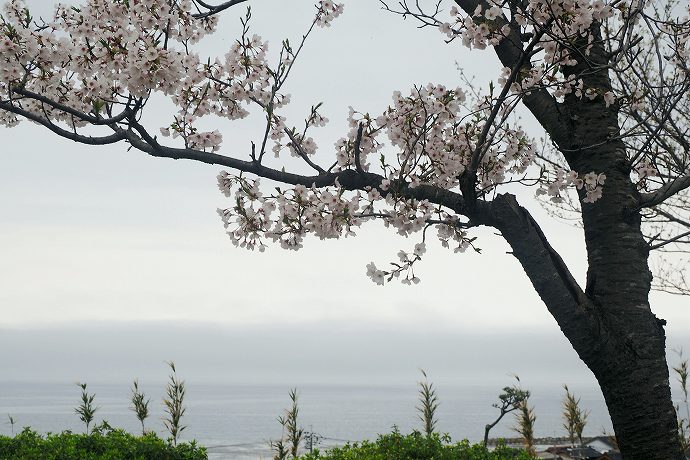 曇り空でしたから正面に見えている日本海の水平線はぼやーっとしていますが、