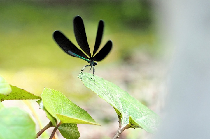 ハグロトンボ(Calopteryx atrata)がひらひら飛んでいます。